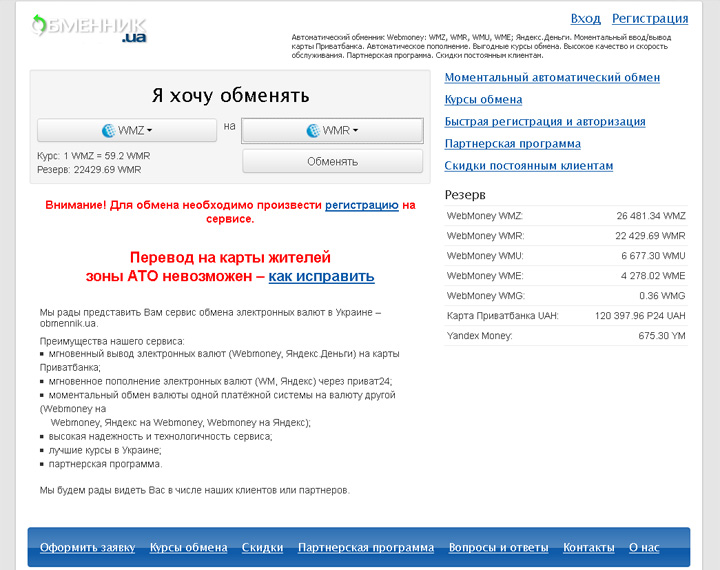 Например, к оплате 500 WMZ, к получению 15169.75 WMR, вознаграждение 10%, эквивалент WMZ = 7.915, эквивалент WMR = 0.254.